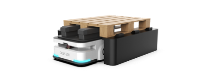 采用移动机器人平台+顶升背负模组,实现机器人背负栈板并转运栈板的功能,一般应用于原材料仓到产线端的物料转运。