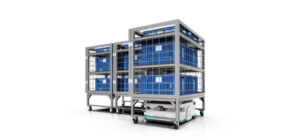 采用移动机器人平台+顶升牵引模组,实现机器人潜伏式背负料车,一般应用于在线边仓到产线或者产线之间的转移。对于空间要求较高的场景,还能通过顶升牵引模组的旋转功能,保证料车不旋转,实现料车的横向移动。