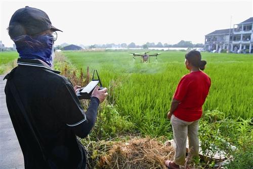 8月18日,路桥区路南街道坦田王村林如根租来专业植保无人机,给他家200亩水稻田喷洒农药,防病治虫。“三天的农活一天内就完成,省心又省力。”林如根说。