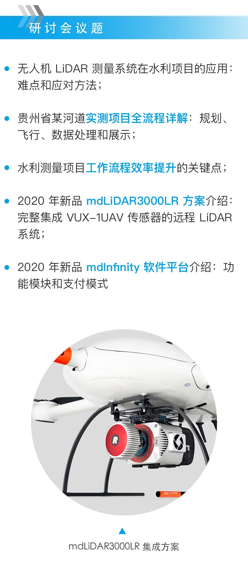 8月28日,来自德国的无人机测量方案提供商MICRODRONES(中文名:镁科众思)将与您分享其创新测量方案mdLiDAR3000LR在贵州河道测量项目的实测案例,如何实施安全高效的作业流程,以及更有效地收集和使用数据。