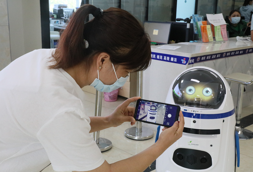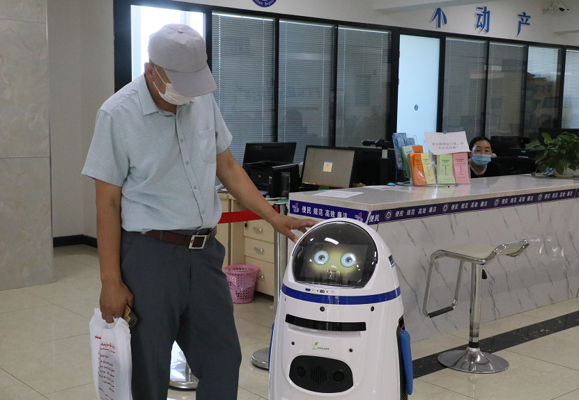 行政服务中心干部叶尔那尔说:“小胖能为办事群众解答各类办事指南,还能担任引导员工作,引导办事群众到办事窗口办理业务。它的出现,给我们工作人员减轻了不少压力。”