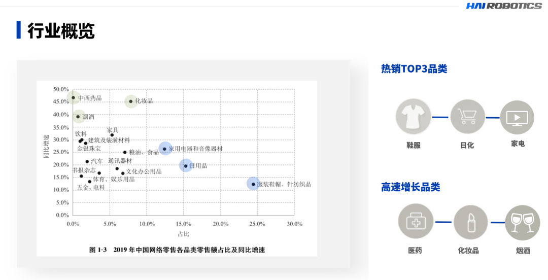 物流仓储逐步步入4.0时代,各式智能化设备的投入助力仓储自动化改造,解决仓储痛点,提升仓储效率。区别于普通仓库,电商仓库SKU量大、批次多、商品规格差异大,具有订单波动明显、不规律等特点,对商品周转速度、出入库效率、发货精准度提出更高的要求。
