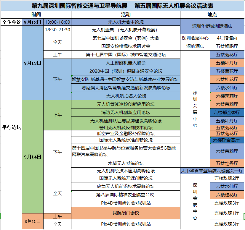 2020年9月13-15日,由中国无人机产业联盟、深圳市无人机行业协会主办,深圳市安博会展有限公司承办的第五届深圳国际无人机展览会将在中国深圳会展中心3、4号馆举办,同期将举行2020第四届世界无人机大会,是目前中国最大的无人机展会,汇聚了来自全球无人机领域的最新技术成果,为中外无人机企业开拓地区市场提供了最佳的平台。