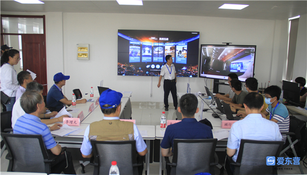 在中科山东东营地理研究院临场分中心,工作人员演示高频次迅捷无人航空器组网观测系统平台及轻小型无人机组网监测成果。