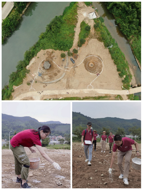 实践期间,渔溪村正准备建造产业园区的观景台,实践团马上对其原有规划方案进行完善,并提供设计图纸,专业老师更带着学生们到施工现场放线,指导施工队建设。后期,实践团还将针对渔溪村的整体规划设计出空间结构规划图、节点平面图、流线分析图、建造意向图等,为当地规划建设提供建议。