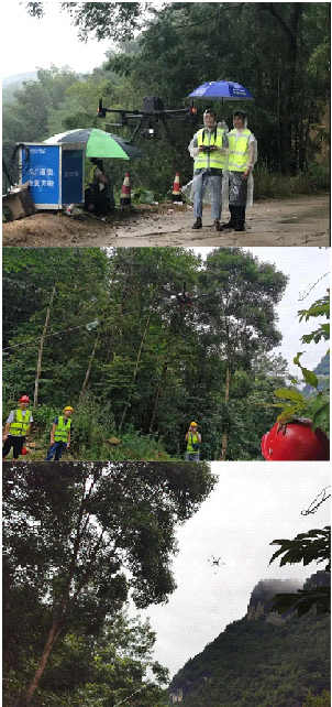 据人民邮电报报道,受持续性强降雨影响,湖北恩施鹤峰县四个行政村19个基站退服。由于光缆恢复区域山势险峻,需要横跨水面60多米的湾潭河,无法采用传统人力布放光缆的方式恢复,中国移动抢修人员结合现场实际情况后决定采用无人机牵引技术布放光缆,于次日下午恢复全部通信业务。