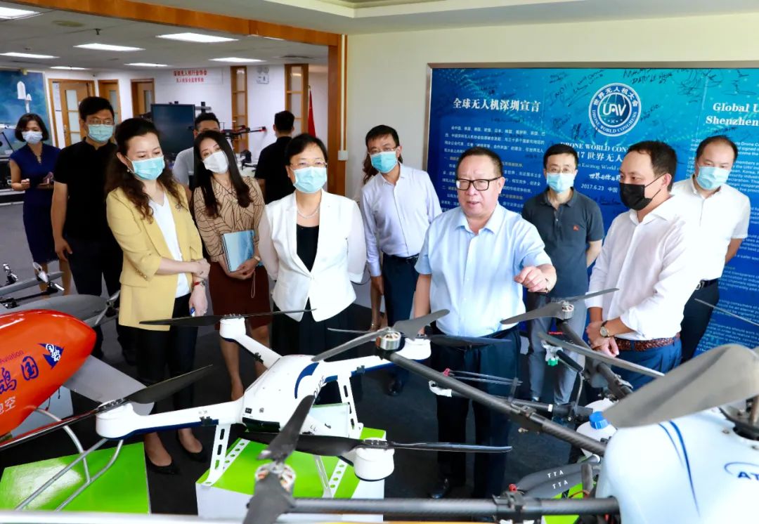 8月25日,深圳市委常委、统战部部长、市政协党组副书记杜玲一行莅临深圳市无人机行业协会,并在协会会长杨金才、常务副会长杨鹏的陪同下,参观了无人机展厅。
