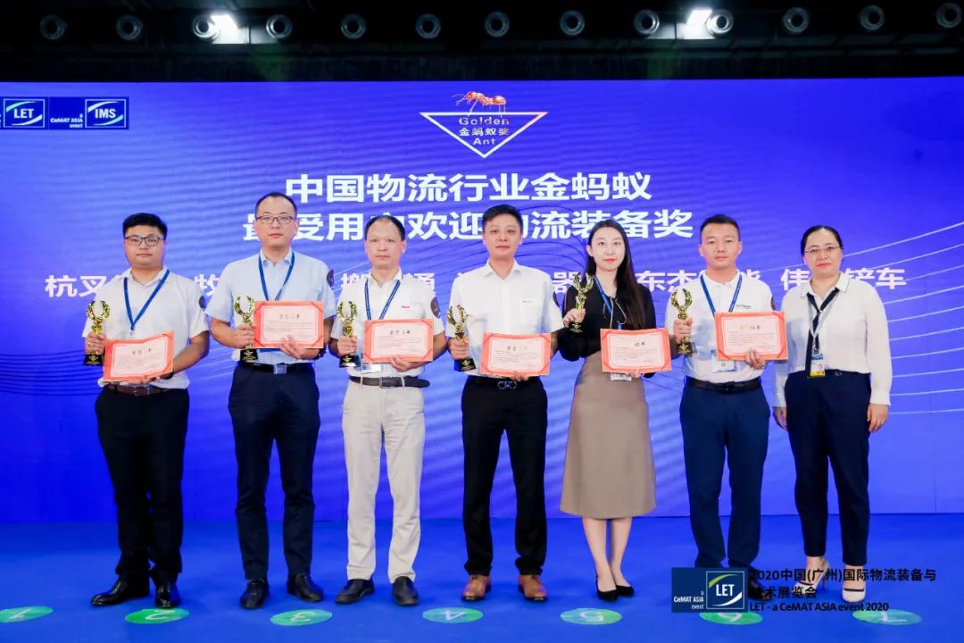 展会首日,2020第五届中国智慧物流大会暨中国物流行业金蚂蚁颁奖盛典隆重举行,东杰智能凭借优异的市场业绩和良好的口碑荣获金蚂蚁最受用户欢迎物流装备奖。