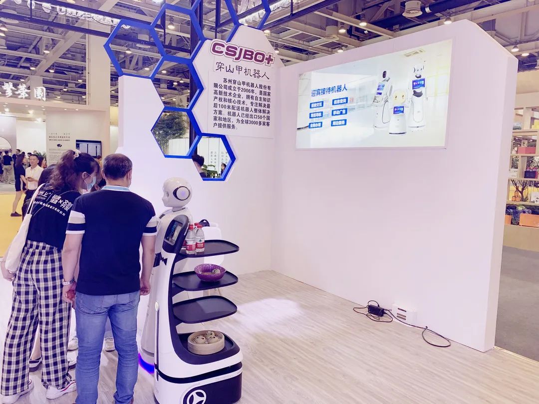 苏州穿山甲机器人股份有限公司作为服务机器人领军企业受邀参加此次盛会,全方位展示旗下面向餐饮、社区、政务、公共服务等应用领域的配送机器人、迎宾接待机器人,现场得到媒体观众的高度认可。