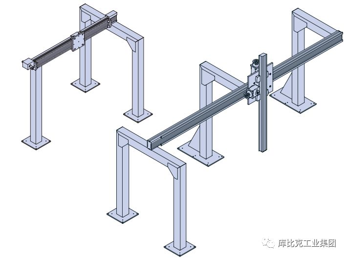 而在很多工厂自动化的应用中,并没有办法实现精密的安装基准和高的安装精度,比如下图所示的龙门应用,使用过程中的外界因素的变化,都会导致安装基准的精度发生变化。这些情况,对滚珠直线导轨是很不利的,往往会导致滚珠直线导轨的运动不平滑,并导致寿命的缩短。