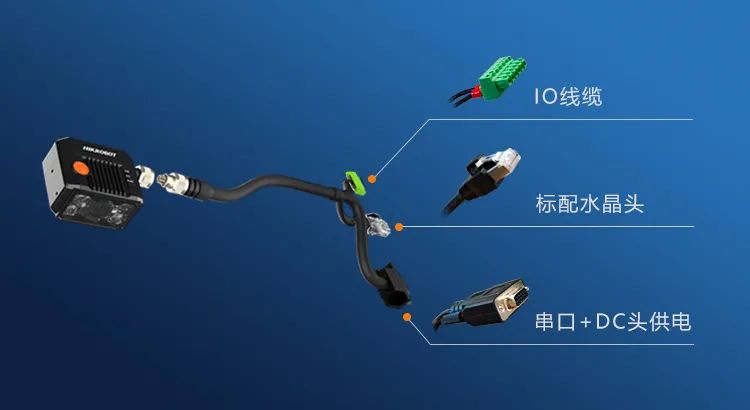 ID2000标配线缆集成度高:自带网口、串口、IO线缆功能;读码器自带甩线,航空头设计,连接稳定。