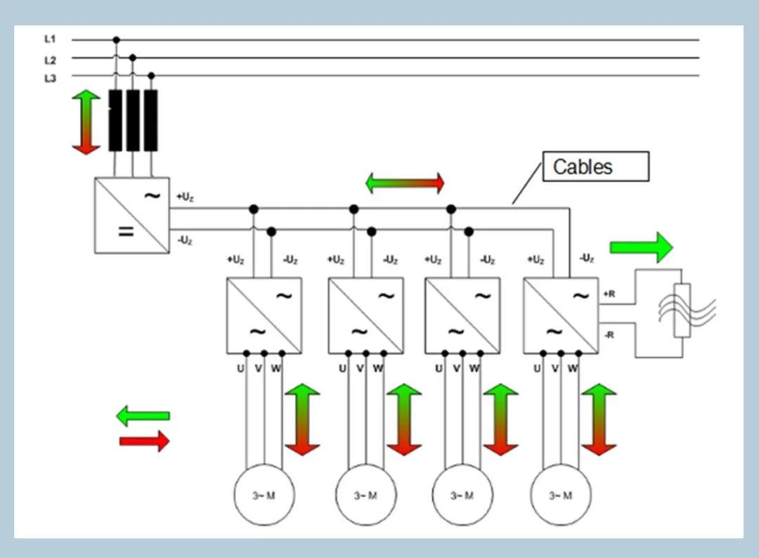 SEW集成多轴内部智能电量管理,搭配MOVIKIT® StackerCrane effiDrive®软件模块,当升降轴在发电时,尽量使用行走轴消耗掉发电能量,提高堆垛机电能利用效率。此外,可选配能量逆变模块,将发电时多余的电能归还电网。在冷库应用中,能取消制动电阻带来的热量污染,绿色环保,低碳节能。