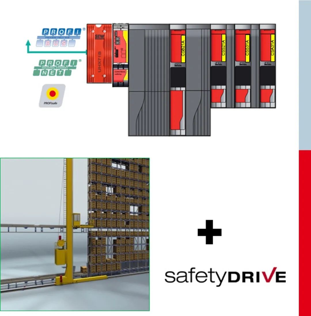 SEW集成安全控制技术,能充分利用堆垛机潜能,又能保证安全减速,不需要外部的机械感应开关,减少机械缓冲装置的安装空间需求。