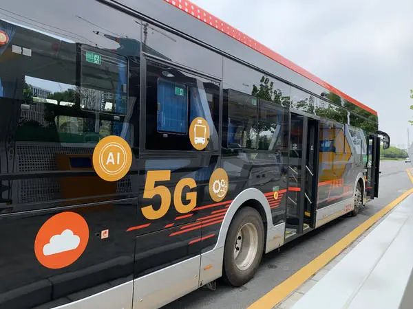 等待大约10分钟,自动驾驶公交车到了,从外表看,车厢与普通的公交车没有太大区别,颜色以黑色、红色为准色调,车厢上张贴着5G、云、AI等符号,车头上滚动着“郑东新区自动驾驶1号线”的字样,与普通公交最大的区别则是车头两侧安装有“智能眼睛”——采用基于深度学习的多源信息融合技术,保证车辆能360°感知周围环境,并且针对一个视角,实现多个传感器监测。