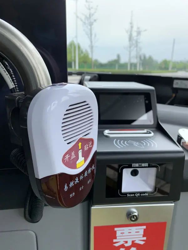 关于安全性,记者注意到,上车处设置有易燃液体安全仪,车厢内多处设置有安全锤。