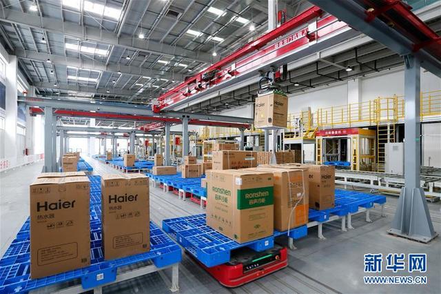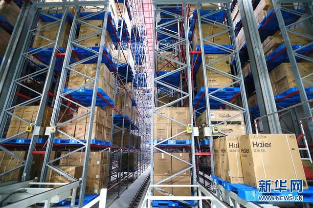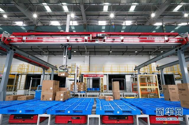 8月5日,在日日顺物流(即墨)产业园的大件物流智能无人仓,商品通过流水线进入立体存储仓库。 在位于山东省青岛市即墨通济新经济区,由日日顺物流打造的首个大件物流智能无人仓今年夏季投入运行。该无人仓应用全景智能扫描站、关节机器人、吸盘龙门拣选机器人等多项定制智能设备,采用5G和视觉识别、智能控制算法等人工智能技术,可实现冰箱、空调等大件商品24小时不间断分拣作业。 新华社发(梁孝鹏 摄)