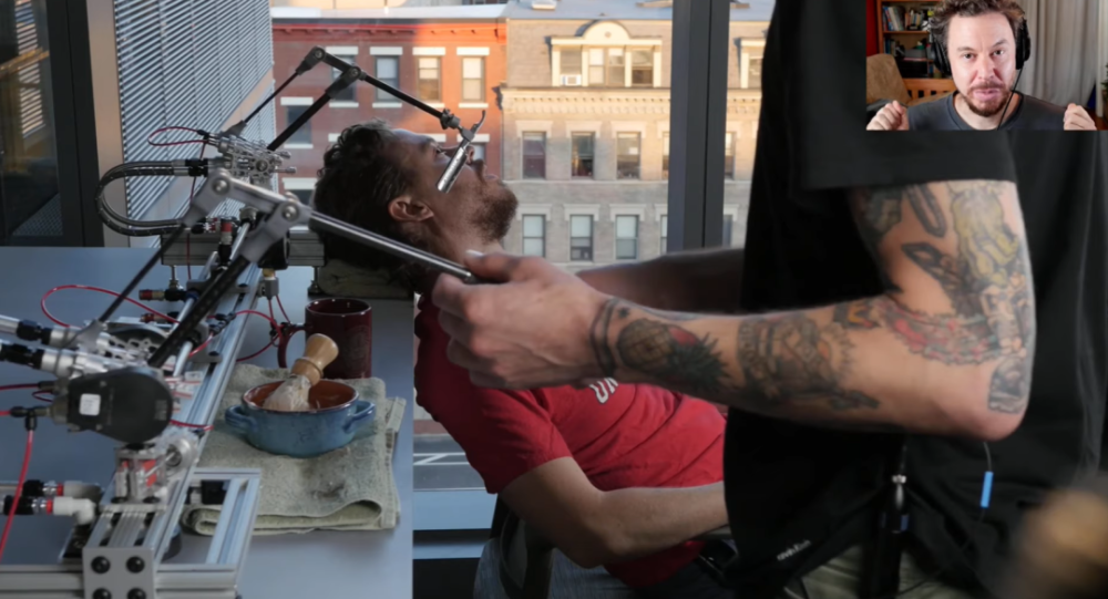 在体验了一把机器人刮胡子之后,Whitney也长舒了一口气,成功“活下来”后,Whitney表示,这其实也是他第一次被其他“人”用直剃刀(straight razor)剃胡子。
