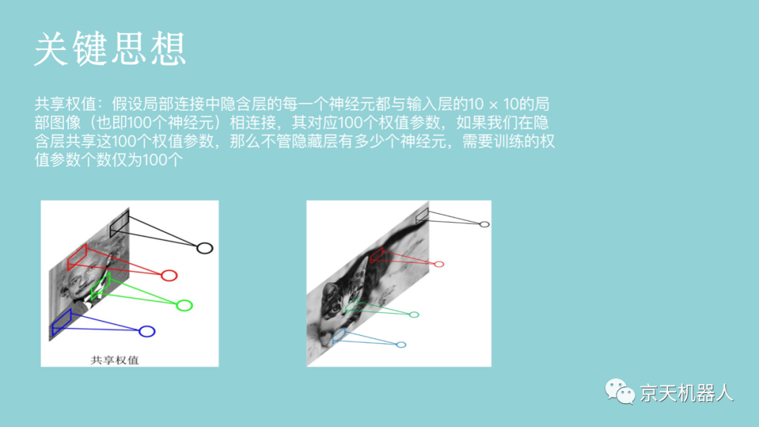 卷积操作可以看成是提取特征的方式,不同的卷积核能够得到图像的不同映射下的特征,称之为特征映射(Feature Map)。如果把一个卷积核看成提取一种特征,那么我们可以通过使用多个不同的卷积核来达到提取多个特征的目的。如果有64个卷积核,那么就可以提取64种特征,两层之间的权值参数也仅为100×64= 6400个。