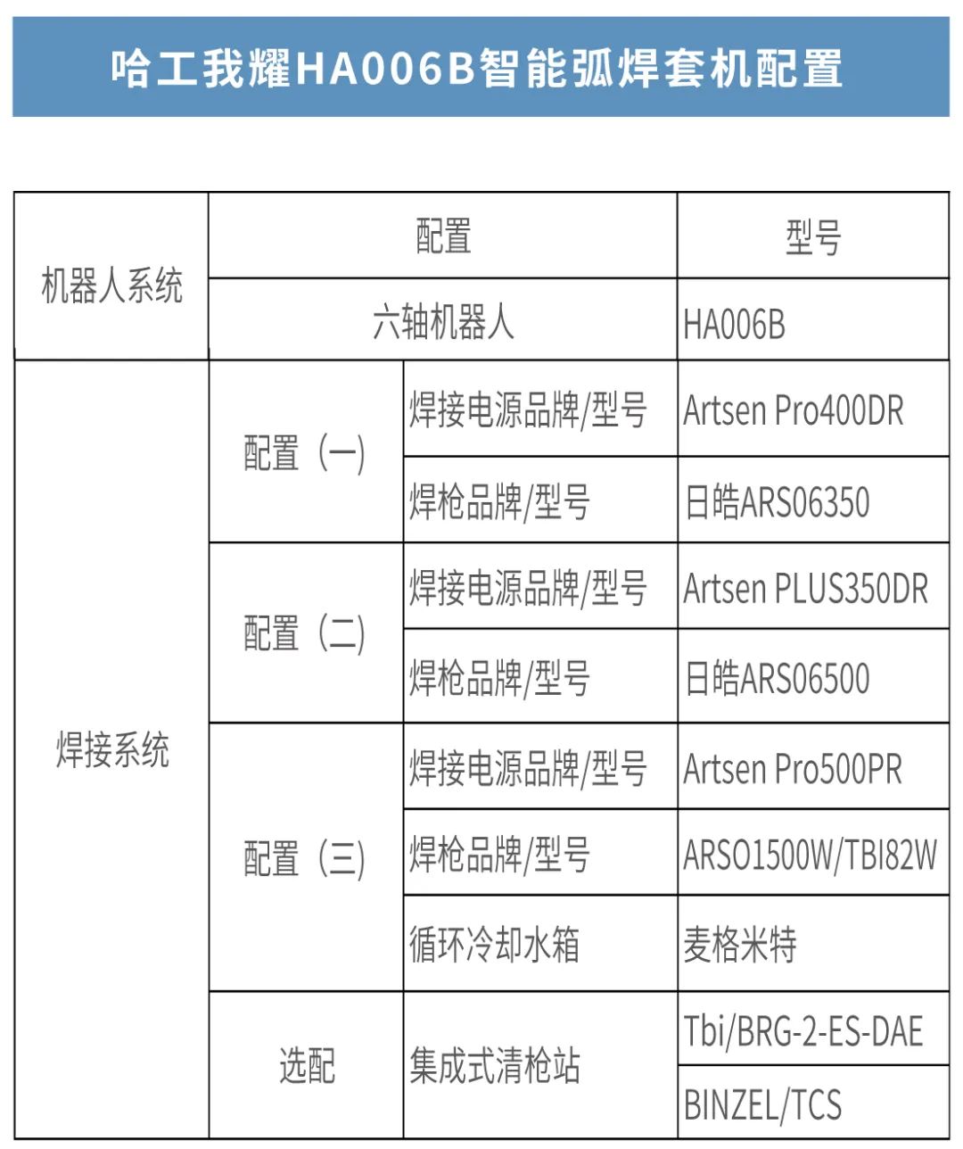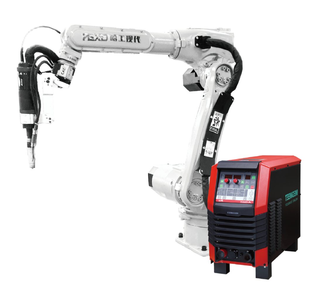针对痛点,哈工智能旗下子公司哈工我耀推出一款智能弧焊套机,由哈工现代工业机器人HA006B、麦格米特焊机、日皓及TBI焊枪构成,具有速度快、精度高、工作范围大、可靠性强、灵活性高等特点,可稳定和提高焊接质量,缩短产品改型换代的准备周期,减少相应的设备投资。