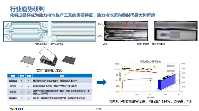 那么前面讲到的是材料,我们再讲讲工艺,工艺现在软包电池公司都是叠片的,其他的大部分都是卷绕的,其实各有优劣势,不是谁对谁错,但是我们还是要看未来,未来客户到底需要什么。回到刚开始说到的话题,客户需要的是长寿命的,客户需要的是越小越好的,客户需要的是功率性特别好的。就是所有不合理的要求,合理的要求,他都要你满足。那么卷绕工艺,在经历这么多年的发展之后,遇到了很大的瓶颈,叠片工艺先天上有很大的优势。比如能量密度的提升,比如稳定性,比如说极耳数量多一倍,工艺性更好,所以叠片工艺是非常有前途的。尤其是当我们把电池的尺寸越做越大的时候,我们知道最早VDA,后来是590模组电芯,220的,现在比亚迪出的刀片是更长的,574这个尺寸,它和590标准模组可以兼容,这个电芯既可以用无模组在电池包里布置,又可以把它装到590模组里,兼容性非常好。但是电芯做得越长,其实能量密度越高,成本越低,因为叠片,每叠一个小的片进去,和每叠一个大的片进去,叠的活性物质的量是不一样的,所以越大,生产能量的效率就越高。同时,越薄的电芯,散热性更好,做针刺的话,容易通过。那么叠片是最适合电池的工艺的。当然还有极耳数量增加了一倍,它的内阻可以增加10%,功率也可以得到提升。还有能量密度,空隙都可以填满,还有界面是非常良好的,卷绕不会出现左边的S变形,包括边缘位置的断裂产生的纹路,所以从安全性能上来讲,叠片也是非常好的。另外就是膨胀,它初始膨胀力和中器后期膨胀率率卷绕的,所以对模组的压力也会更小,也会提高安全性。叠片和无钴,一个是工艺制造角度,一个是材料成本和安全性角度,是基础性的未来趋势,可以满足对成本,对效率、对功率、对寿命各方面的要求。钴这个产品,确实是非常非常重要的,每年都有人会起诉苹果公司,会起诉特斯拉,说他们使用的钴来源不干净,这也成为整个行业非常痛的和不可回避的问题。钴的储量这么小,只有710万吨,而且还特别集中,只有几家公司可以制造生产,特别容易被操控。电动车单车用量又非常大,Model S已经用了9系高镍电池了,但是单车用量还要消耗掉13.68公斤的钴,所以钴这个问题不消除,肯定是不符合未来电动汽车发展的趋势。