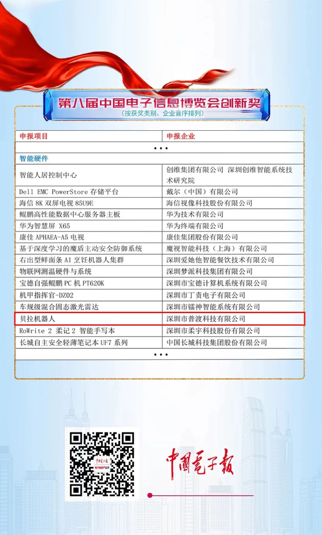 # 贝拉机器人荣获“第八届中国电子信息博览会创新奖”