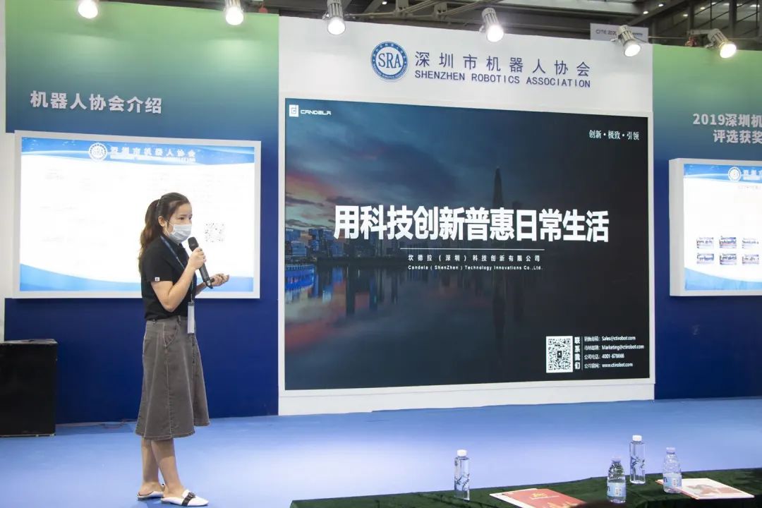 展会当天,坎德拉受邀在4号馆专题讲台发表以“后疫情时代,坎德拉机器人的商业实践”为主题的演讲,讲述用科技创新融入日常生活的创新理念。