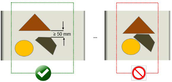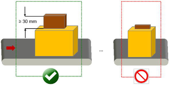 检测输送方向上物体之间距离≥50mm的非规则物体数量,需要物体轮廓清晰可区分。此时物体不可接触。
