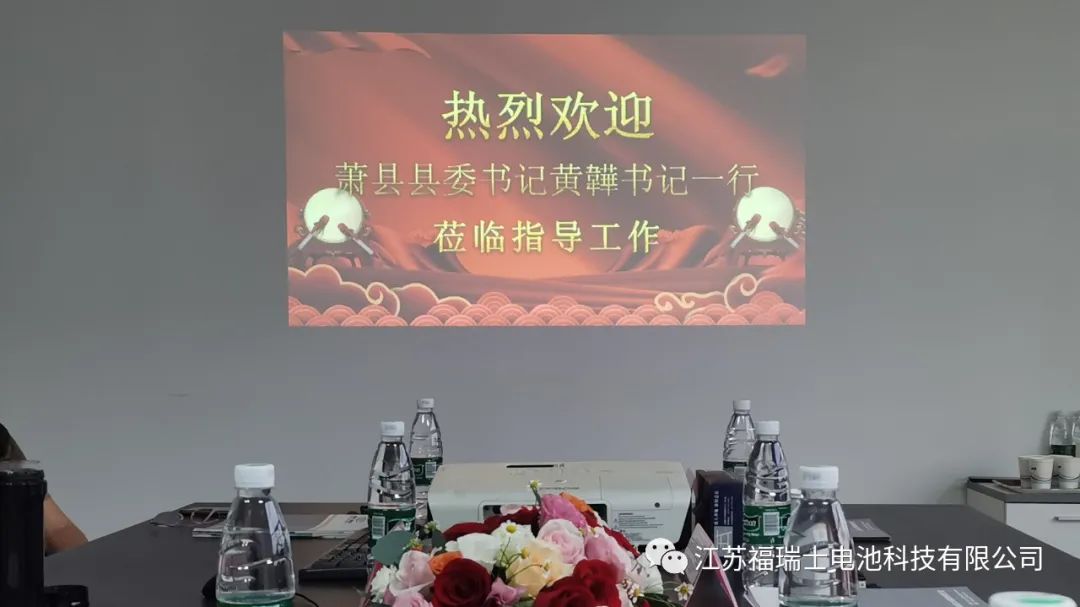 2020年8月18号上午,安徽省宿州市萧县县委书记黄韡书记带领招商局、建设局、环保局等领导班子成员到江苏福瑞士电池科技有限公司进行参观考察。福瑞士总经理姚红岩女士、中国矿业大学周梅华博导陪同参观。