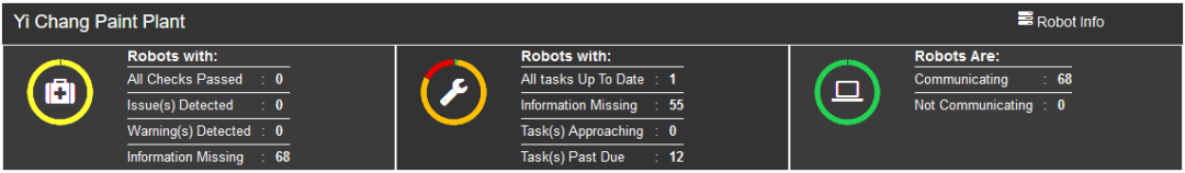 云端远程服务系统:合成树脂工厂还采用了FANUC云端远程服务系统ZDT,ZDT可对机器人的潜在问题进行提前预警,从而避免机器人在生产中的意外停机发生。同时,ZDT的预防性维护功能,可以帮助用户准确掌握每台机器人的维护保养周期。