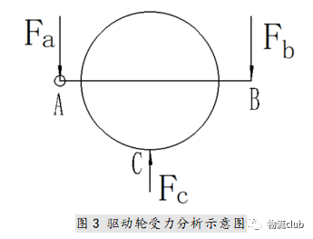忽略驱动轮自重重量,对现有仓储机器人驱动轮受力分析如图3。