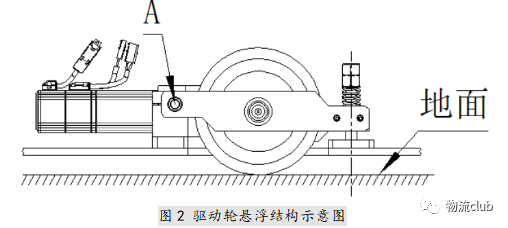 从图2可知,驱动轮可绕绞点A上下转动,并通过另一端的弹簧力使驱动轮接触地面,以适应地面起伏,并提供足够的附着力。