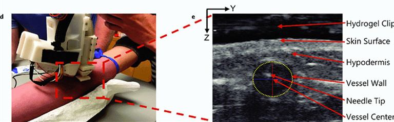 现在,罗格斯大学(Rutgers University)的一个团队已经开发并正在测试一种几乎自动的机器人系统,该系统可以定位可能合适的静脉,插入针头甚至抽取血液样本。该静脉穿刺设备旨在安全地在前臂周围静脉进行采血。该系统结合了超声成像和小型机器人技术,以识别适合插管的血管,并自动将连接的针头引向所谓的管腔中心。