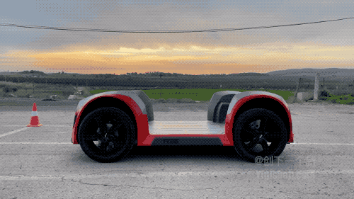 车身采用模块化组装,只有一个平台和四个车轮组成,就好像一个大大的滑板。用专业的话来讲,就是非承载式车身~