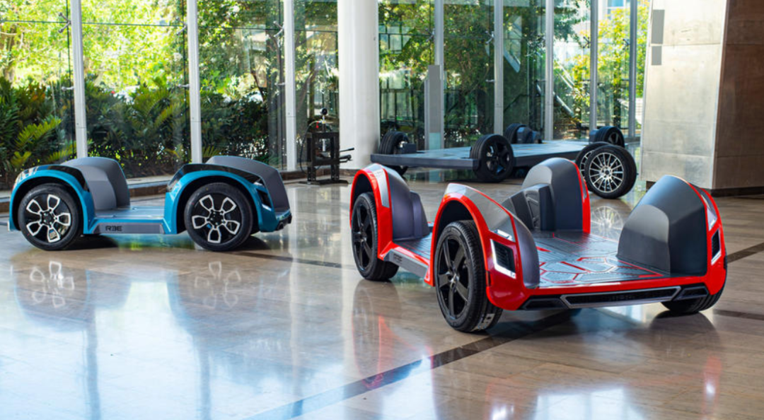 这不,一家以色列来自以色列的初创公司REE Automotive设计了一款汽车底盘模型,电力驱动!它把四个轮子安装好了,沙发任你选配,它就是——Skateboard Platform
