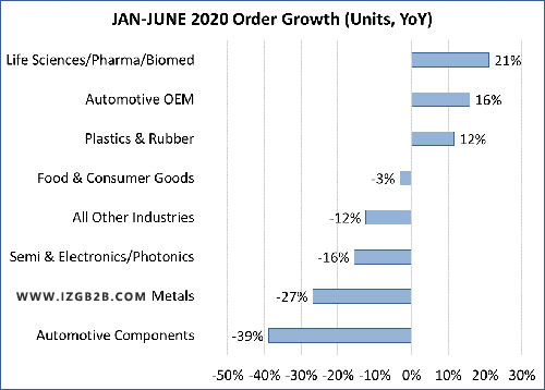 “尽管出现整体收缩,但生命科学领域有两个显着的行业亮点(+ 97%),塑料和橡胶(+49%),” Shikany说。