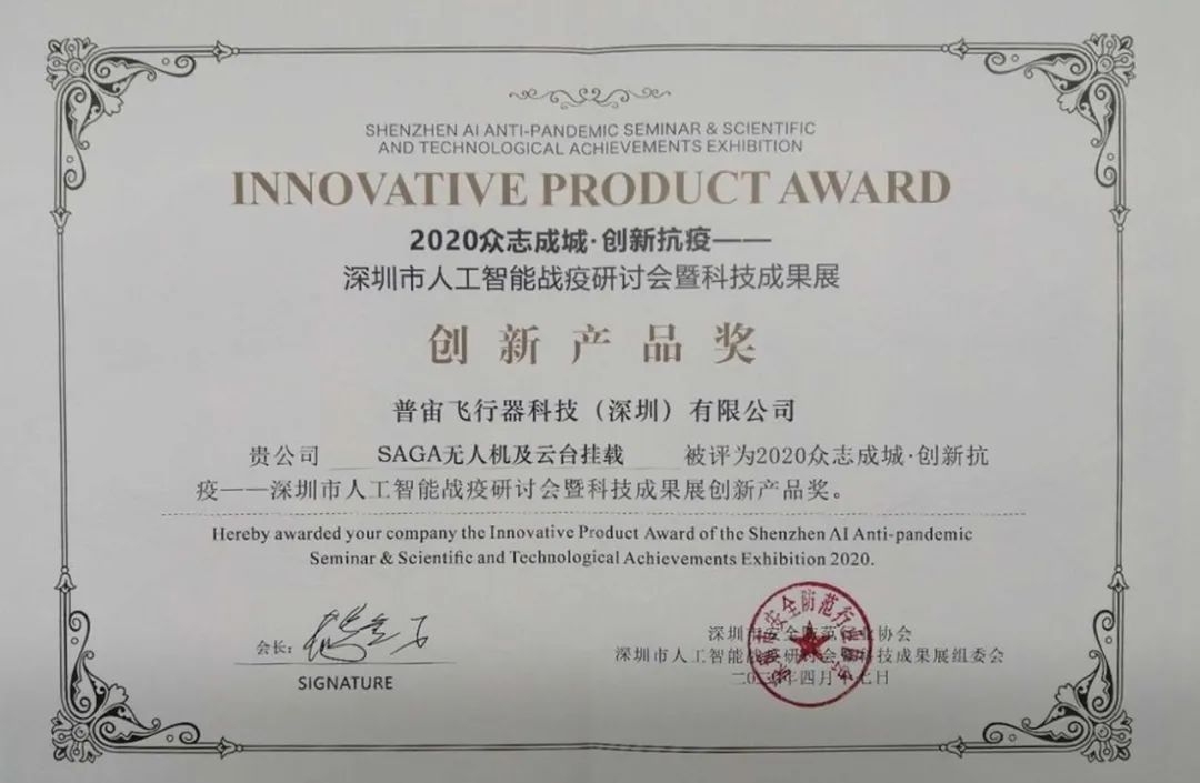 ▲普宙无人机荣获2020创新抗疫奖