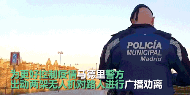 就在国内好转的同时,欧洲疫情开始集中爆发,并迅速蔓延至全球。西班牙成为继意大利后欧洲第二个“封国”的国家。在严格封闭措施下,除特定情况外,西班牙全国民众禁止出行,所有非必要的娱乐场所及企业都必须停止营业。马德里警方开始使用无人机巡逻,并喊话劝说民众回家。