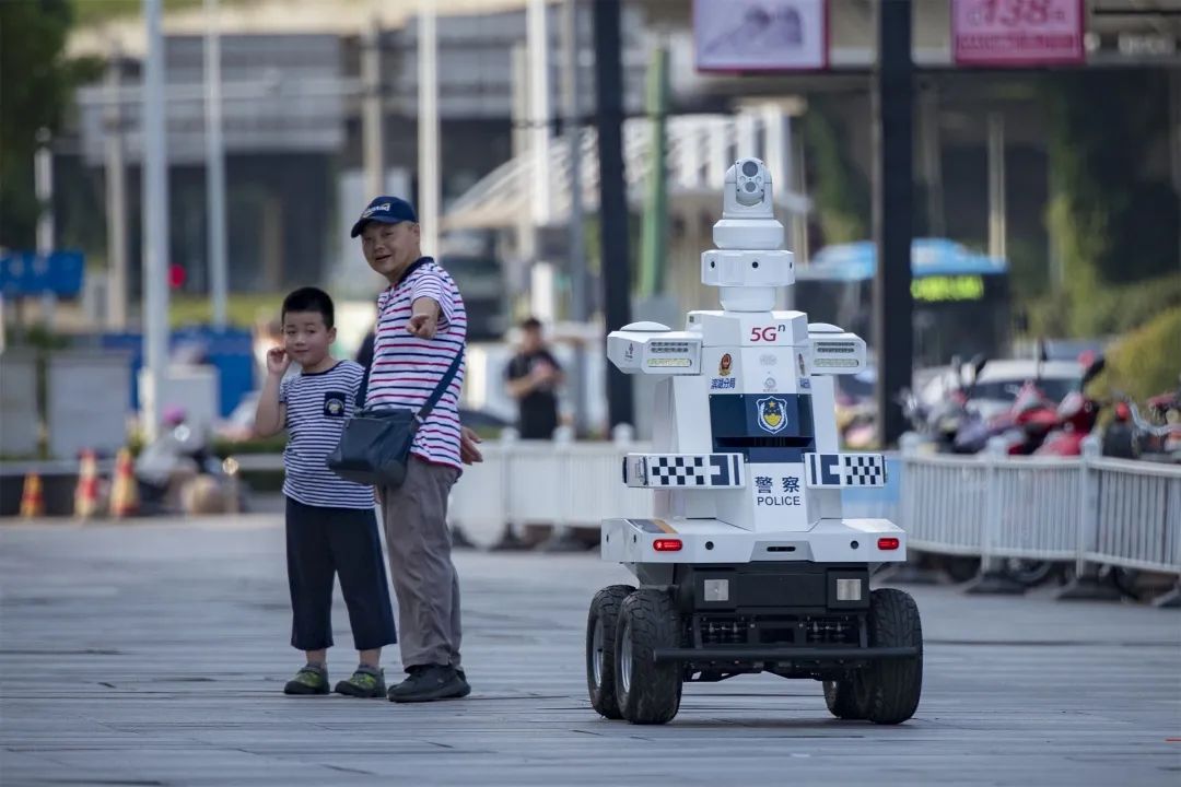 5G警用巡逻机器人高度1.6米,搭载了6个高清摄像头,可以进行360度的旋转和上下120度的俯仰,实现全方位安防巡逻。