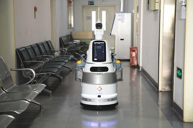 优必选AIMBOT(智巡士)机器人在深圳三院发热门诊消毒杀菌(央广网发 受访者供图)