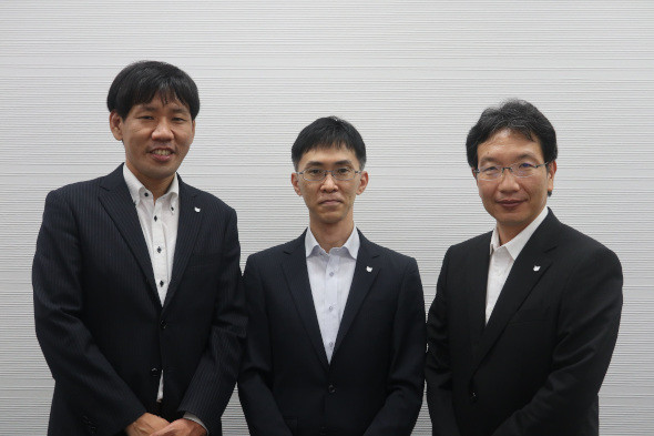 负责“基于视觉的AGV导航系统”业务规划的冈本先生(左)以及负责技术开发的中原先生(右)和小竹先生(中)