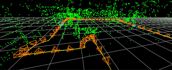 该视觉导航系统是基于立体摄像机的图像识别空间,提取特征点,并将其与地图数据进行比较以确定车辆的位置。这是一种估算和确定路线的技术。它采用“ Visual SLAM(同时定位和制图)技术”,该技术可同时估计自身位置并创建带有视频的环境地图,其优点是仅通过试运行即可自动创建地图。当将其用于AGV时,它吸引了人们的注意,因为它即使部署在频繁变化的工厂现场也可以轻松地自主运行,而无需准备导轨、胶带或其他导轨。该系统的特征在于,除了“ Visual SLAM”技术外,还使用了经过20多年研究和开发的MR技术。MR技术要求人员佩戴头戴式显示器(HMD)并根据视点位置的移动在位置上显示3D CG图像。通过利用将这些结构用作标记的空间识别技术以及将其与地图对齐的技术,现在可以在比以前更大的范围内执行更准确的空间识别和路线确定。大竹先生表示目前使用的“ Visual SLAM”在许多情况下都是为狭小空间设计的,很少有人考虑到可以大范围携带物品的可能性。这次开发的技术是MR等。通过添加该技术,可以准确地识别大范围的空间,因此,重点是针对在诸如AGV的大空间中使用进行了优化。