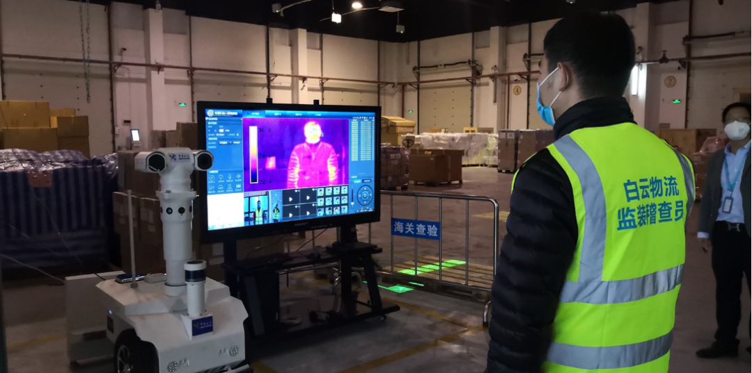 机器人启用疫情防控模式,通过人体红外测温筛查、戴口罩智能识别、高音循环播报宣传、远程喊话对讲、远程指挥调度、历史信息回溯等功能,解决了一线人员工作强度大、近距离接触交叉感染风险、快速部署麻烦、历史信息无保存、远程监管不通透等问题,协助一线民警或工作人员,在危险、高强度的工作环境中完成排查、防控任务,有效节约了人力资源。机器人可以在5米内可同时给10人进行非接触式测温,最大限度降低一线人员感染病毒风险。同时,巡逻机器人还具有自主巡逻、超长续航、云端部署、高音播报、语音对讲等基础能力,搭载了5路高清视频及高精度红外热成像,借助4G/5G深度适配无需搭建网络,可快速切换工作场景。