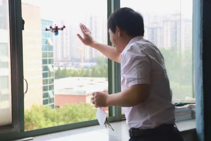 最后一份惊喜带给了正在G栋606办公室伏案办公的邓砚谷老师。同学们游刃有余地操作着无人机升到六楼,微风中微微来回晃动着的贺卡与玫瑰静静地等待老师的取下。