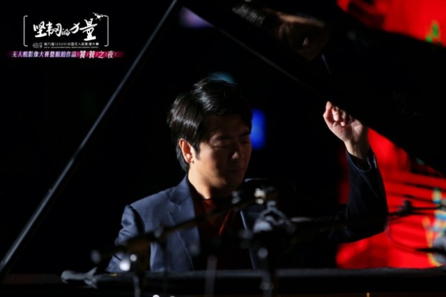 (郎朗在“航拍作品饕餮之夜”上演奏《我爱你中国》)