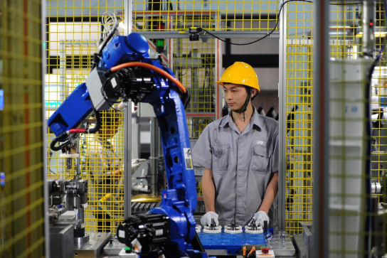 龙润公司技术人员正在操作机器人