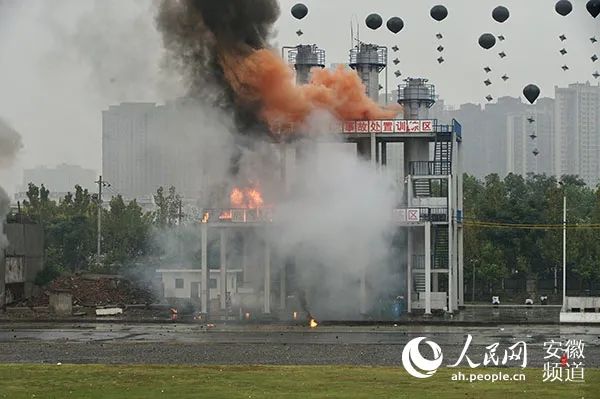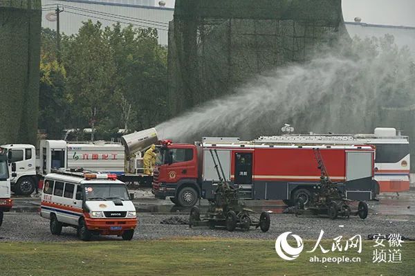 本次演习主场设置在安徽省消防救援总队训练与战勤保障支队,分演习场在芜湖、阜阳、安庆。累计动用大中小型特种装备车辆110多台(套),携带物资器材1000余件。