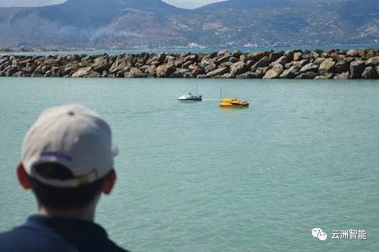 2015年9月,在希腊,云洲ESM30无人船搭载采样系统进行水质采样监测。