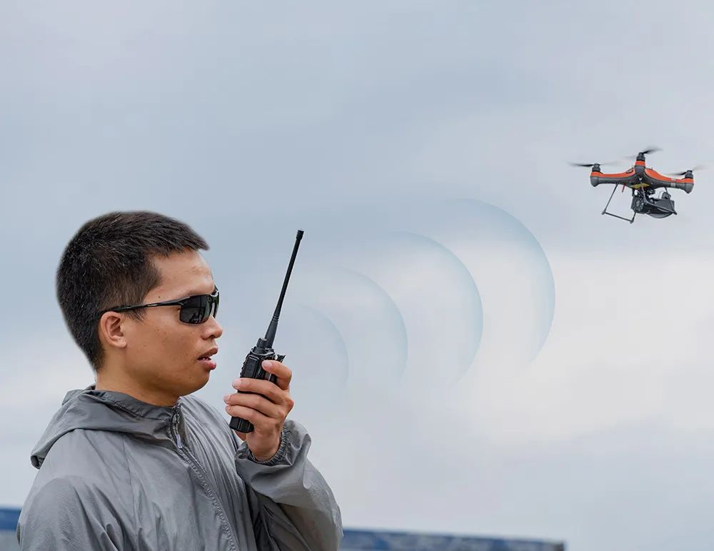 HHQ无线喊话器同时具备实时喊话及语音播报功能,可随时切换。手持端地面发射装置连接手机,可任意设置要播放的警告和通知等。