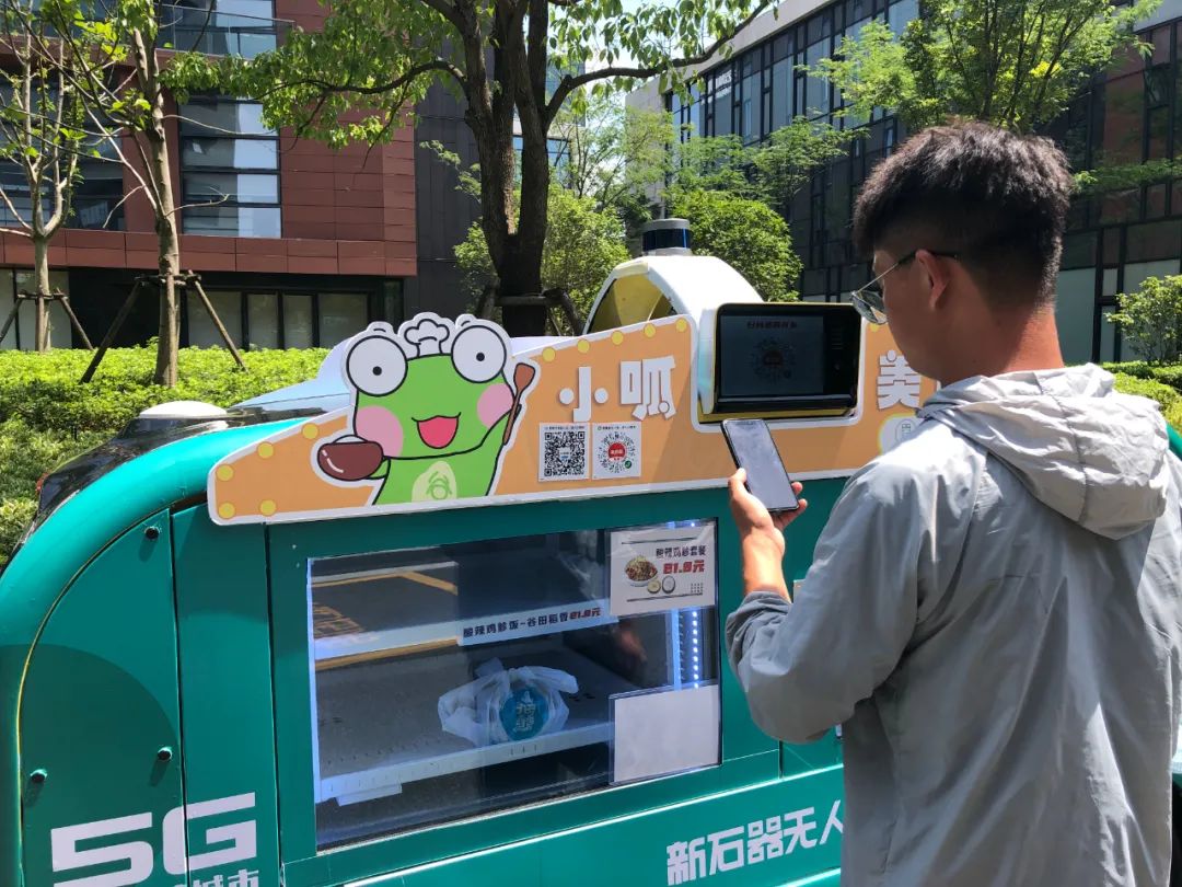 以在北京运营的小呱“无人美食车”来说,每天早中晚,无人美食车都会准时准备好相应的美食套餐,通过自动驾驶在各个站点出现,也可以通过招手拦停功能让它停下购买美食。朋友们通过小呱“无人美食车”的透明“橱窗”,可以直观的看到有哪些售卖的套餐和具体数量。