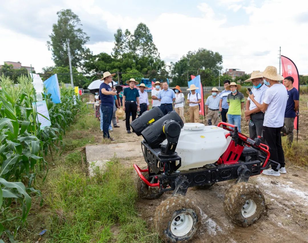 作为本次活动特邀的农业科技公司,极飞科技现场介绍了极飞农业物联网、极飞农业无人机、极飞 R150 农业无人车等多种先进的无人化设备,并进行了现场防控演示。
